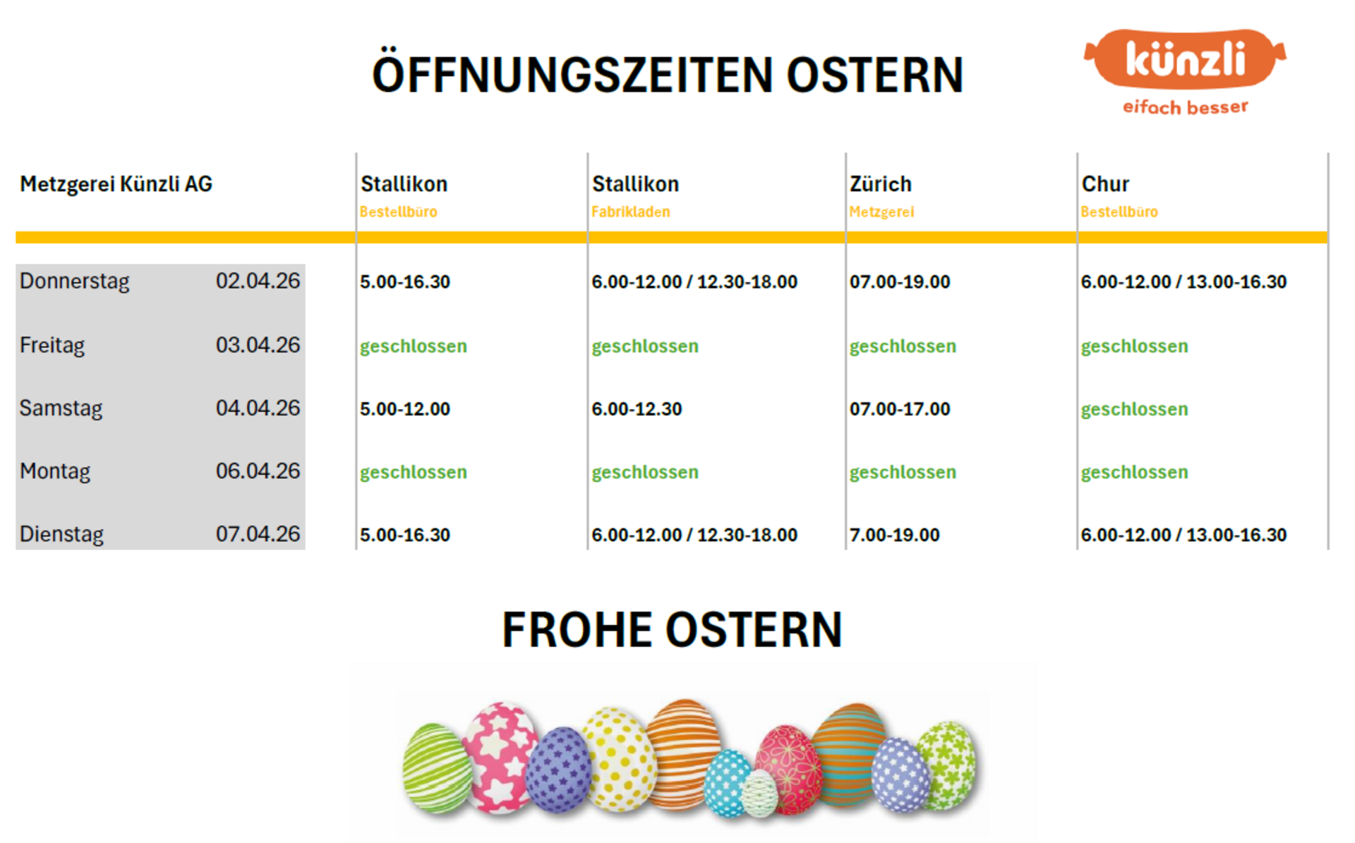 Unsere Öffnungszeiten über die Oster-Feiertage finden Sie hier....